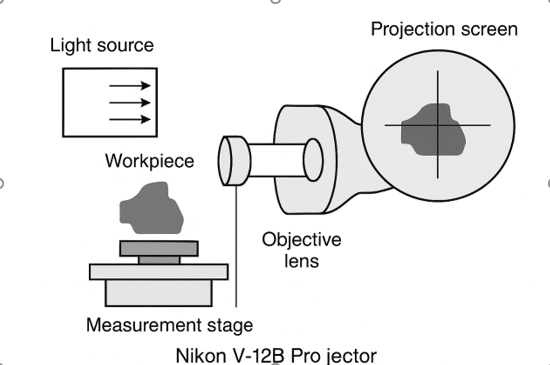 Diagram of the working principle of the Nikon V-12B profile projector